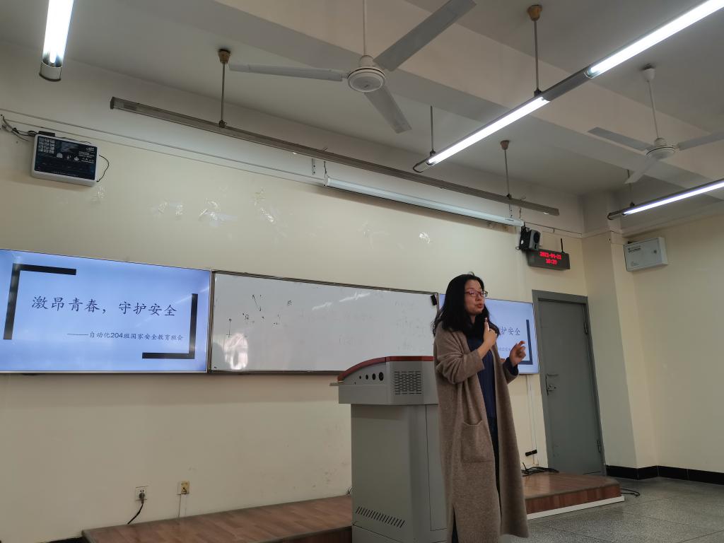 四月十五日是全民国家安全宣传教育日,为响应学校政策,控制工程学院团委积极开展了一系列宣讲活动。20级机器人工程各班以及自动化各班在团支书和班长的带领下开展了一系列国家安全主题班会,通过播放PPT以及相关影片让同学们了解了《国家安全法》,辅导老师也针对网络安全,电信诈骗问题进行教育,让同学们认识到培养安全意识的重要性,保卫国家安全,保守国家秘密。