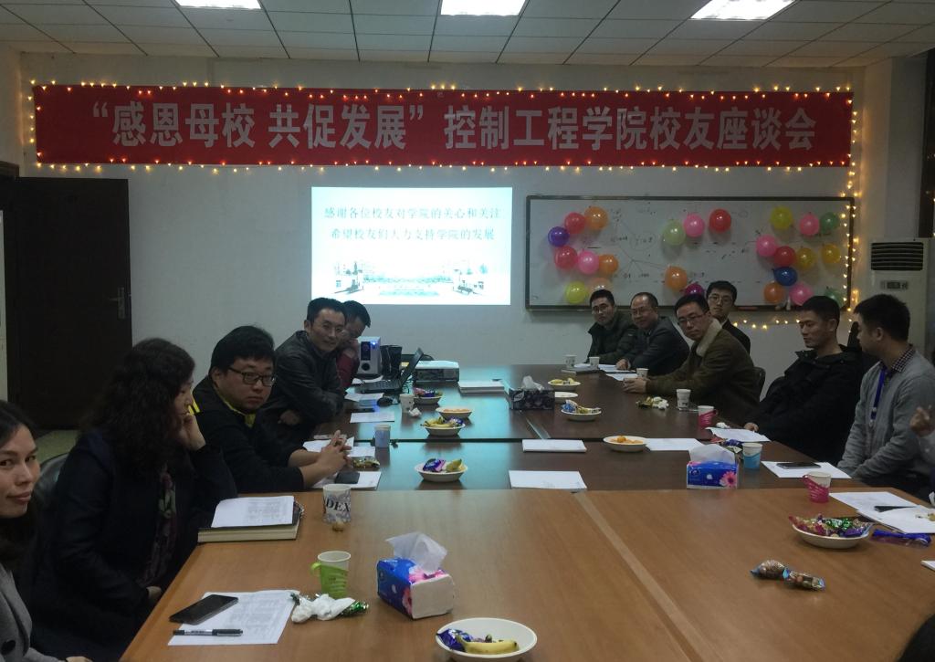 为加强校友联系,沟通校友感情,听取校友意见,促进学校发展,以太阳成集团tyc33455cc四川校友会成立大会为契机,控制工程学院于11月24日下午特别举办了以“感恩母校,共促发展”为主题的校友座谈会,座谈会特别邀请了前控制工程学院副院长、现学校科技处处长朱明以及控制工程学院院长蒋涛、党总支书记邓丽琴、副书记张勇、团委书记田晓旭与王燕等十余名校友进行了深入、亲切的交流。