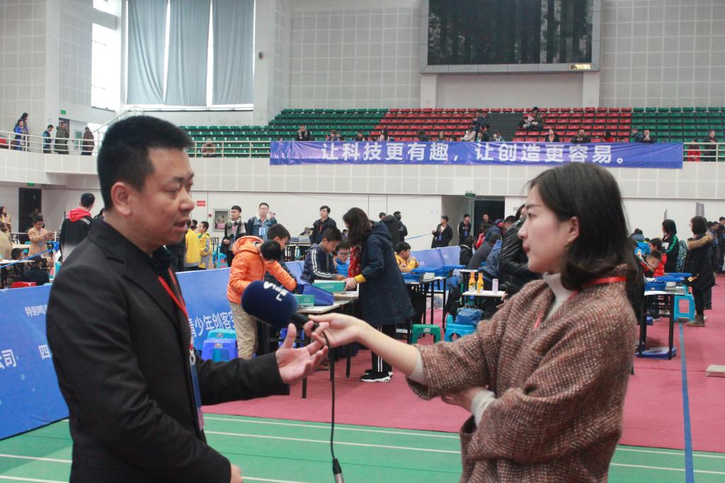 大赛以“阳光,创新,智能”为主题,共设置了3个类别10个比赛项目,来自成都70多所学校的800名中、小学生参与其中,通过有趣的比赛项目考察同学们在思维逻辑、团队沟通、创新意识等方面的能力,如项目“翻山越岭”,通过调整车辆的平衡性来检验同学们的综合素质,而马拉松项目则是考验同学们的创新能力。随后,蒋涛院长在采访中表示:少年智则国智!今后将努力组织更多的青少年群体参与到科技创新活动中来,让更多小朋友们接触到前沿的科技、感受科技创新的魅力。同时,控制工程学院通过科技竞赛这个平台,加强高校、企业、中小学、社会之间的联系,服务社会,聚集各界力量,为国家的教育与各项事业贡献自己的一份力量!