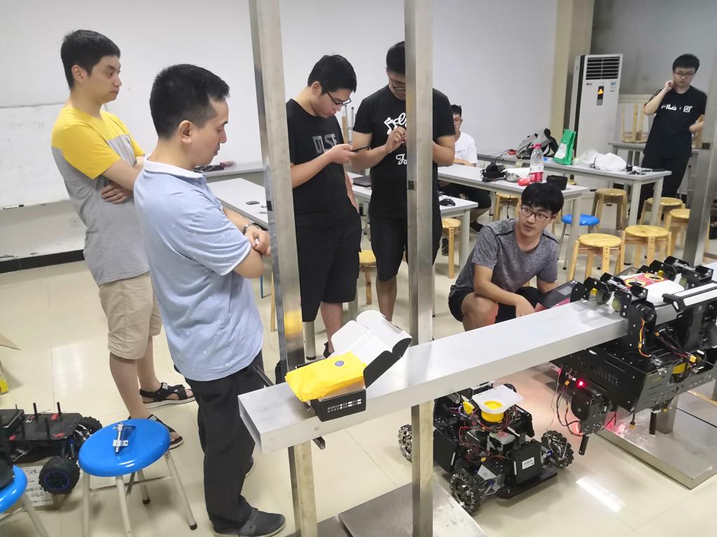在蒋涛、刘鹏、刘甲甲、许林、漆军、邓昌建等老师的指导和帮助下,周杨、邢修华、贺喜、钟卓男、秦豪五位研究生顾问的技术支持下,由SIRB实验室戴云成、胡超、赵涛、唐尧、王婷婷、陈浩、王仕钰、谭丰伟、曾冠华、黄炎、郑盟久、王子豪、杜淳、宋欢、王一淳、蔺晨文十五人分别组成的“风信子”战队和“方舟”战队,通过几个月废寝忘食的努力付出,不断攻克了机械结构设计、机器人控制、计算机视觉等方面的各种难关。本着“让思维沸腾起来,让智慧行动起来”的参赛宗旨,充分发挥实践能力、团队协作能力和创新精神,用不断涌现的新点子填满无数困难的沟壑,最终,架构起了步兵和哨兵机器人,比较圆满的实现了RoboMaster机甲大师赛对抗赛&单项赛要求的全部功能要求,同时,让车模驰骋在智能汽车竞赛总决赛的赛道上。除了技术积累方面,参赛队员们也在比赛中得到了成长,了解了新的团队运营知识,掌握了沟通交流的答辩技巧,并通过两次比赛的平台开阔了视野,在整个比赛中从团队到个人都收获颇丰。为10月份的“中国机器人大赛”积累了宝贵的经验。