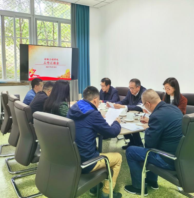 余敏明对控制工程学院的发展成果予以肯定,他要求,每位教职工都要为学校和学院发展统一思想,明确责任,党员同志要认真学习党史,从学史中学经验和规律,从而做到“明理、增信、崇德、力行”,真正促成 “悟思想、办实事、开新局”;学院领导班子要加强自身建设,站位高远,以上率下,破解难题,让学院产生凝聚力,进而形成更强的执行力和战斗力。他指出,通过学习党史,能更好的做到以师生为中心,把个人的能力充分发挥出来,让更多的人为学院出谋划策,达到事半功倍的效果;控制工程学院有自身特色,要进一步凝练团队、凝练学科、强化特色,持续加强人才引进力度,为学校申博做贡献;充分研究学习国家政策、学校政策,把复杂问题简单化,简单问题程序化,把握好决策、过程、监督、评价各环节,以新发展理念为指引,全力推动学院教育教学高质量发展。利用好课程思政,有机融合第一课堂与第二课堂,实现育人育才相统一;要充分挖掘资源,改善学院办学条件,深入推进校企合作,做好产教融合, 进一步增进学院效益,从而提升教职工的归属感和获得感。