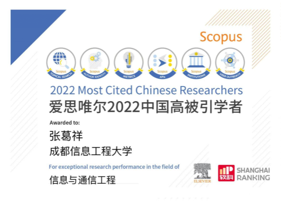 2023年3月28日,爱思唯尔(Elsevier) 与上海软科教育信息咨询有限公司联合发布2022“中国高被引学者”(Highly Cited Chinese Researchers)榜单。我校tyc33455cc太阳成集团张葛祥教授连续第三次入选。