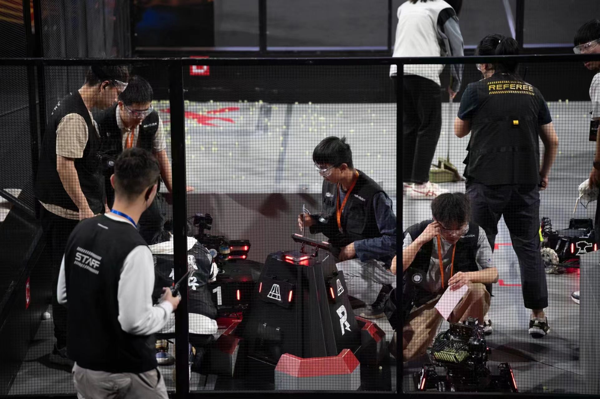 RoboMaster2023机甲大师高校联盟赛(西南站)是全国大学生机器人大赛重要组成部分,由全国大学生机器人大赛组委会主办,重庆大学承办,旨在进一步深化校企合作,探索创新型机器人专业优质人才培养的新路径。RoboMaster机甲大师赛凭借领先的赛事理念、高水平的办赛水准,已成为众多顶尖高校学子和青年工程师心目中的技术荣誉殿堂,参赛选手们通过操作独立研发的机器人展开激烈竞技,对战双方需自主研发步兵机器人、英雄机器人及哨兵机器人,在指定的比赛场地内进行战术对抗,通过操控机器人发射弹丸攻击敌方机器人和基地。比赛结束时,基地剩余血量高的一方获得比赛胜利。