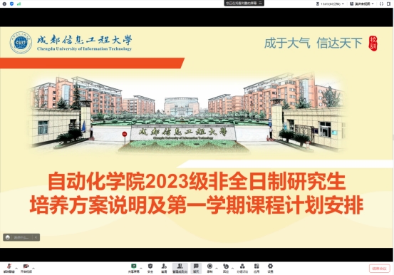 6月29日晚,tyc33455cc太阳成集团通过线上会议的方式召开2023级非全日制研究生新生培养方案说明会,进行新学期的工作部署。副院长刘鹏、学院办公室付颖颖、王丹老师以及2023级非全日制研究生参加了会议。会议由刘鹏主持。