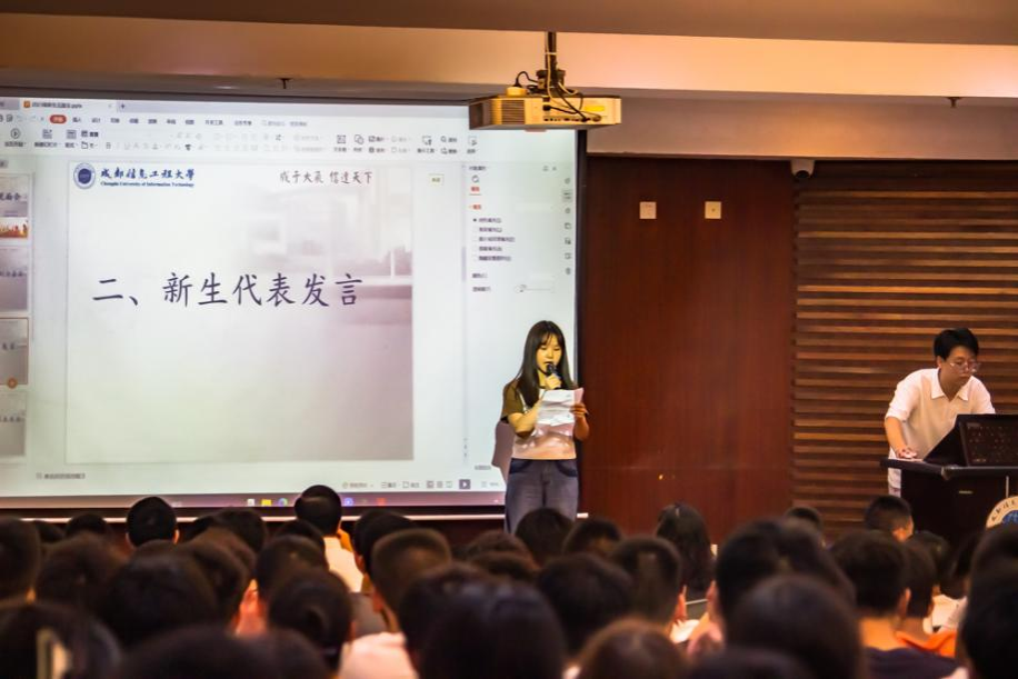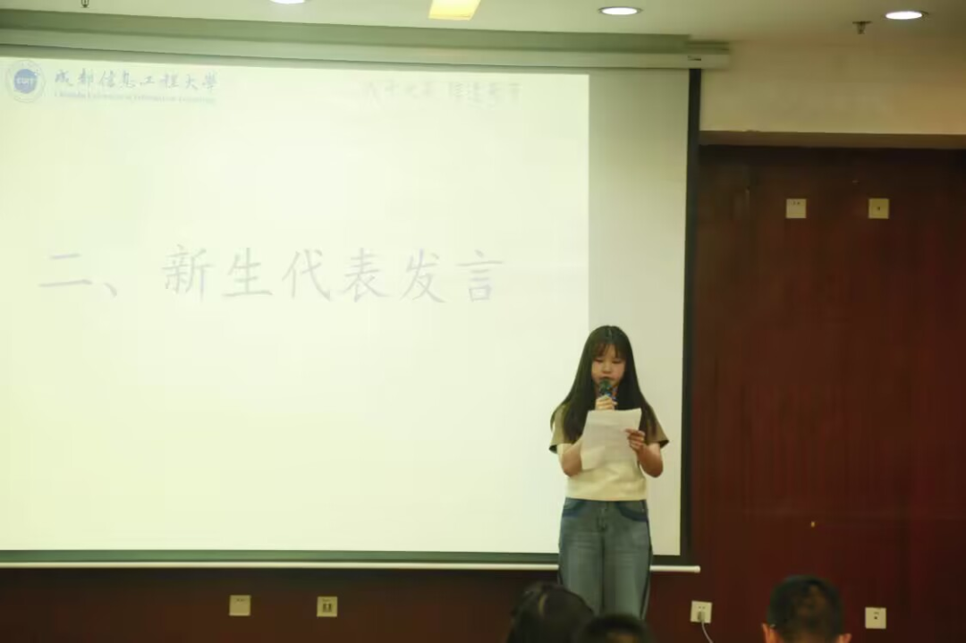 2023级新生代表李莉莎在会上展现了对大学生活浓厚的向往,与对未来的憧憬。她期待自己能够在大学的学习和生活中积极向上,珍惜时光,能够脚踏实地,好好学习,通过社会的实践,不断的提高自身的能力、弥补自己的不足。并且她表明她将在未来的时光中,在仰望星空同时,走好脚下每一步,规划好未来的蓝图,不断的提升自我、挑战自我。