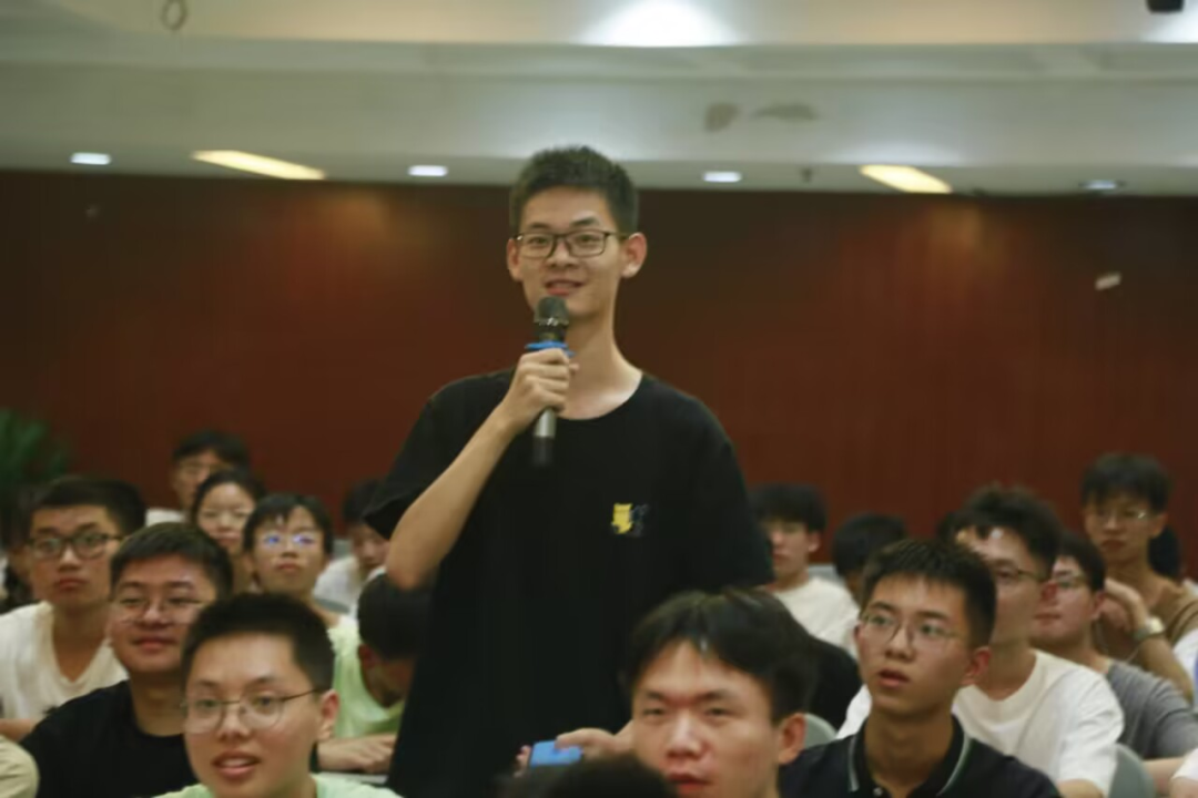 在见面会的最后,来到了互动环节,新同学们积极踊跃的提出自己心中对大学生活,未来就业等方面的一些疑惑,老师们也热情耐心的回答同学们的问题。