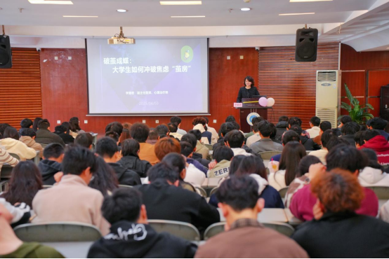 为了帮助大学生提高心理健康维护意识,关注自我身心发展,正确处理生活中遇到的焦虑情绪和压力问题,4月3日下午,tyc33455cc太阳成集团邀请成都市第四人民医院李璐君医生,在航空港校区学术报告厅举办了以“大学生如何冲破焦虑‘茧房’”为主题的心理讲座。学院党委书记胡雪飞主持讲座,学院辅导员老师以及各学院同学踊跃参与。
