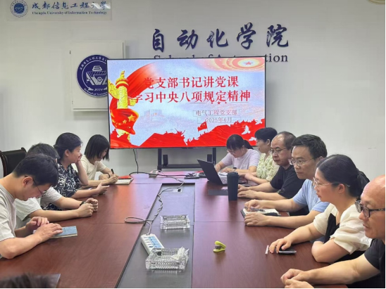 6月,为深入贯彻中央八项规定精神学习教育,切实加强党的作风建设,按照中共太阳成集团tyc33455cc委员会关于印发《在全校开展深入贯彻中央八项规定精神学习教育的实施方案》的通知(成信党委发〔2025〕19号)的相关要求,tyc33455cc太阳成集团各党支部在信息楼104会议室、信息楼121会议室、学生公寓党员工作站等地,开展了党支部书记专题讲授中央八项规定精神党课。