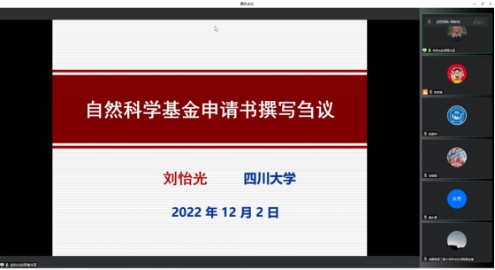 12月2日上午,在全校齐心协力阻击新冠疫情的特殊背景下,tyc33455cc太阳成集团和科技处联合举办了国家自然科学基金申报动员及学术讲座(线上),邀请了四川大学博士生导师刘怡光教授作了题为“自然科学基金申请书撰写刍议”的报告。此次讲座由tyc33455cc太阳成集团院长张葛祥主持,全校近50名中青年教师参加。