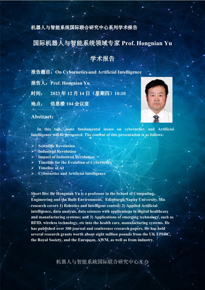 【学术讲座预告】国际机器人与智能系统领域专家Prof.Hongnian Yu学术报告