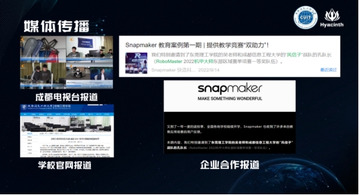 在学术交流方面,团队与南京航空航天大学、首都师范大学等多所高校保持常态化互动,曾通过机甲大师线上论坛分享机械创新、嵌入式系统及计算机视觉三大技术方向的实践经验,并定期开展线下技术沙龙。团队发展成果获得成都电视台、中国新闻网及学院官方平台专题报道,社会影响力持续扩大。特别在"欧洲翻番"国际交流活动中,团队带领意大利学生参观实验室,通过技术演示与实操体验,展现了中国大学生在机器人与人工智能领域的技术实力,搭建起跨文化技术交流的桥梁。